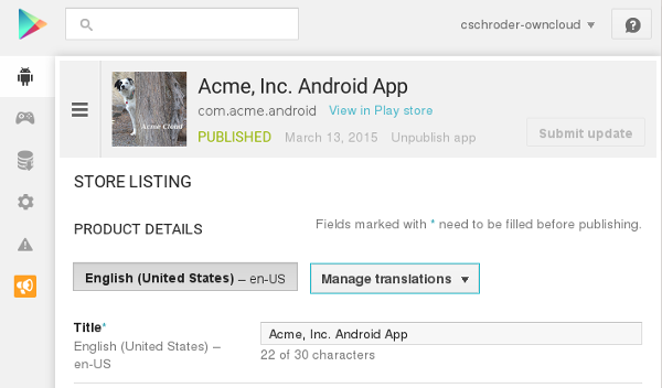 Now that you have created your branded Android app with ownCloud’s ownBuilder service (Creating Branded Client Apps (Enterprise Only)) how do you distribute it to your users? There are multiple ways: Distribution via Email, Publish On Your ownCloud Server, or Publish to the Google Play Store. However you distribute it, the first step is to digitally sign your new app. Signing your app verifies authorship and authenticity.